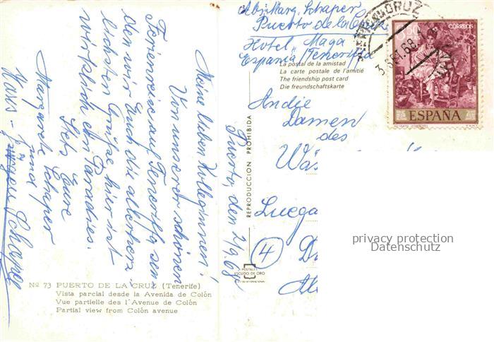 74137847 old postcard Puerto-de-la-Cruz Tenerife ES Vista parcial desde la Avenida de Colon postalisch gelaufen Erhaltung siehe scans [WerneD78] KatCode: 11510