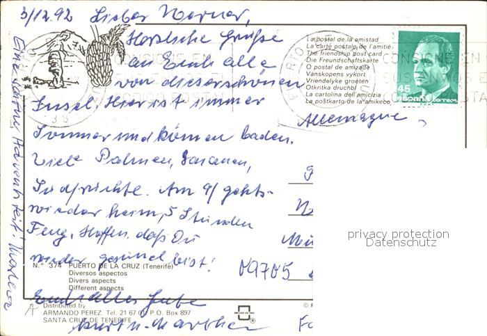 old postcard Puerto de la Cruz Teneriffa Swimmingpool Uferpromenade postalisch gelaufen Erhaltung siehe scans