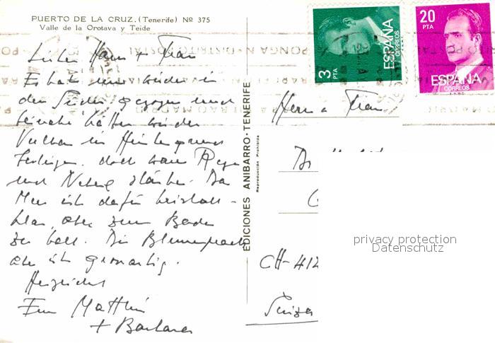 old postcard Puerto de la Cruz Valle de la Orotava y Teide Vulkan postalisch gelaufen Erhaltung siehe scans [FriedD77]