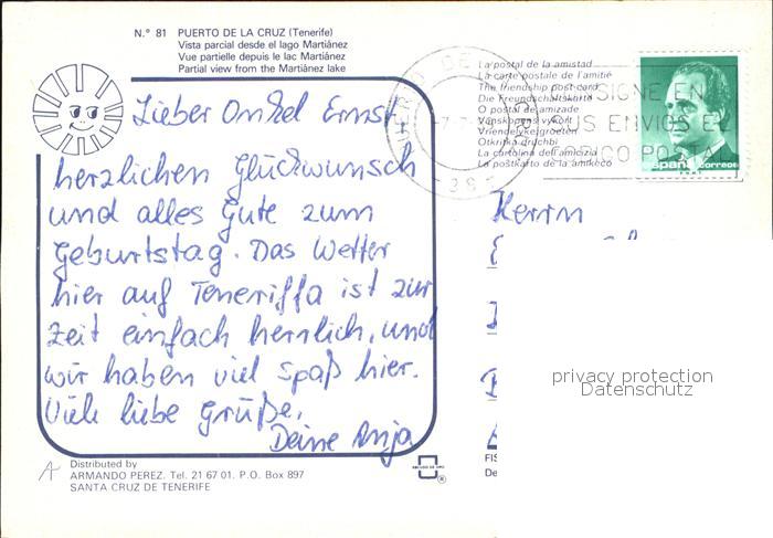 old postcard Puerto de la Cruz Vista parcial desde el lago Martianez postalisch gelaufen Erhaltung siehe scans [WerneD78]