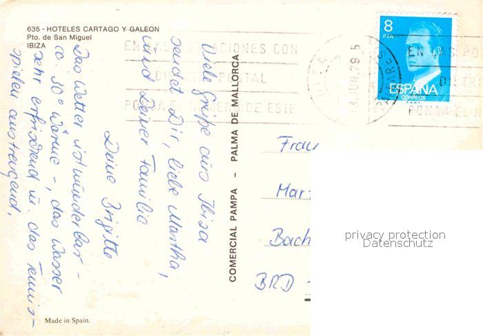 old postcard Puerto de San Miguel Hoteles Cartago y Galeon Playa Hotels Strand postalisch gelaufen Erhaltung siehe scans [FriedD77]