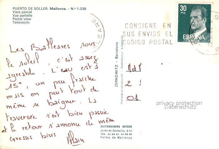 old postcard Puerto de Soller Vista parcial postalisch gelaufen Erhaltung siehe scans [FriedD77]