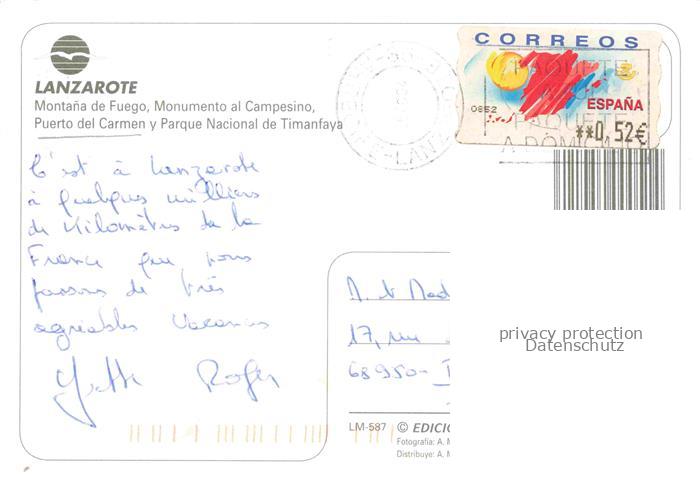 74015098 old postcard Puerto del Carmen Montana de Fuego Monumento al Campesino Parque Nacional de Timanfaya postalisch gelaufen Erhaltung siehe scans [FriedD77] KatCode: 11510