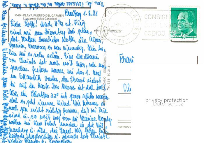 old postcard Puerto del Carmen Playa Strand postalisch gelaufen Erhaltung siehe scans [FriedD77]