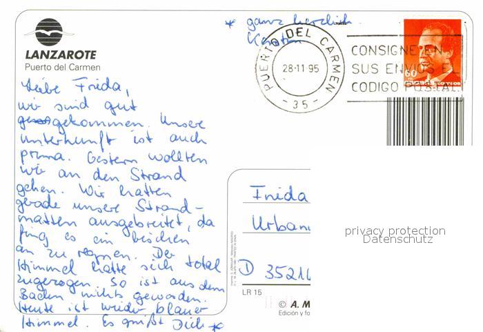 old postcard Puerto del Carmen Strand postalisch gelaufen Erhaltung siehe scans [AndreD76]