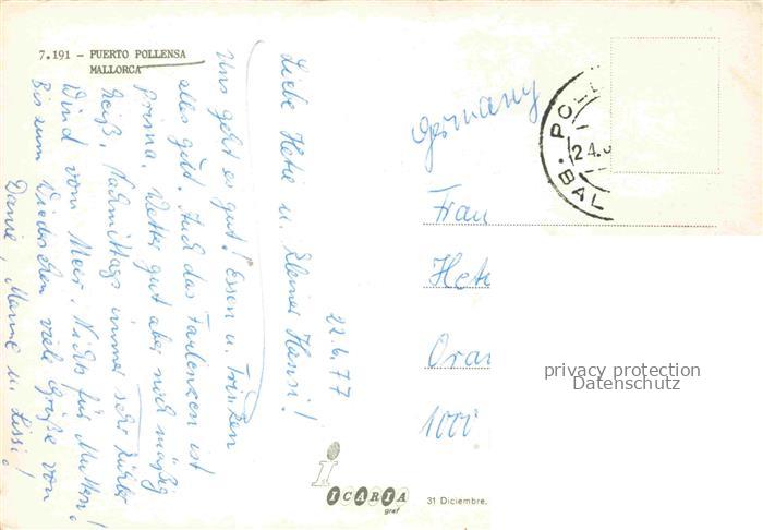 Puerto POLLENSA Mallorca ES Fliegeraufnahme postalisch gelaufen Erhaltung siehe scans [WerneD78] alte Postkarte Wern Katcode 11510