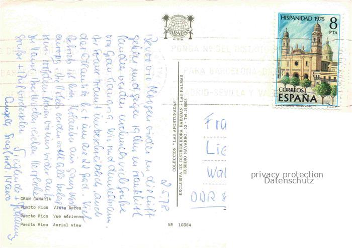 74043636 old postcard Puerto Rico de Gran Canaria ES Ferienanlagen Bungalows Hotels Strand postalisch gelaufen Fliegeraufnahme Erhaltung siehe scans [FriedD77] KatCode: 11510