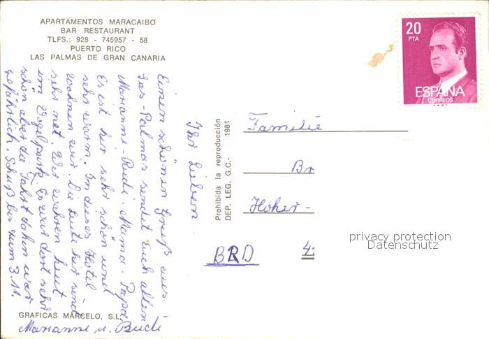 Puerto Rico Gran Canaria Apartamentos Maracaibo Bar Restaurant postalisch nicht gelaufen Erhaltung siehe scans