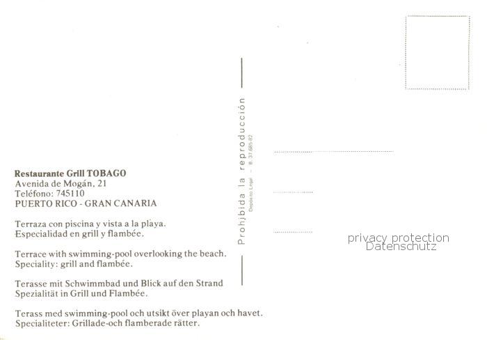 Puerto Rico Gran Canaria ES Restaurant Grill Tobago Gaststube Pavillon postalisch nicht gelaufen Erhaltung siehe scans [WerneD78]