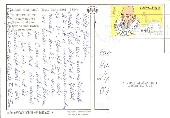 old postcard Puerto Rico Gran Canaria Strand Hafen postalisch gelaufen Erhaltung siehe scans