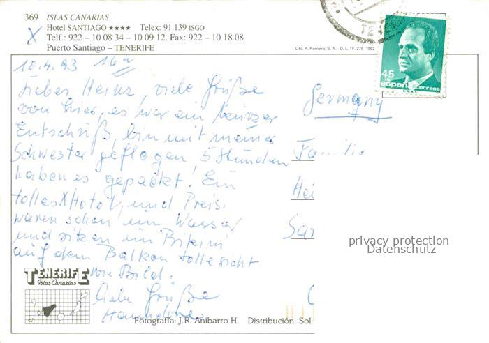 74142159 old postcard Puerto Santiago Tenerife ES Hotel Santiago Swimming Pool postalisch gelaufen Erhaltung siehe scans [FriedD77] KatCode: 11510