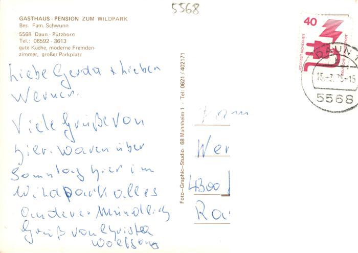 73893187 alte Postkarte Puetzborn Gasthaus Pension Zum Wildpark Gastraeume Bar postalisch gelaufen Erhaltung siehe scans [WerneD78] KatCode: 11110007233501