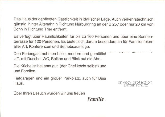 72577774 Puetzfeld Hotel Zum Ahrbogen Fremdenzimmer Restaurant postalisch nicht gelaufen Werbekarte (keine Postkarte) Erhaltung siehe scans [FriedD77] KatCode: 11110007131002
