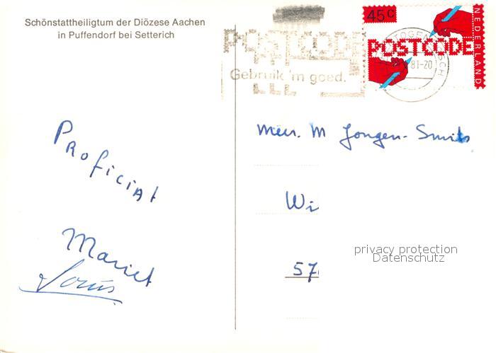 72920609 alte Postkarte Puffendorf Schoenstattheiligtum Dioezese Aachen postalisch gelaufen Erhaltung siehe scans [PaolaD17] KatCode: 11110005354008