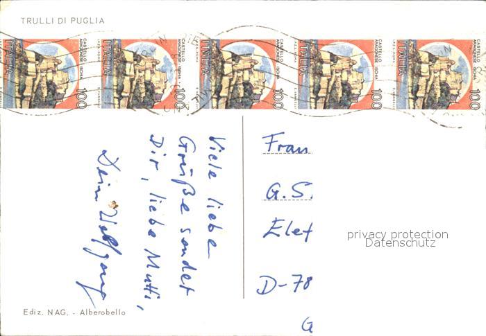 old postcard Puglia Trulli Rundhaeuser postalisch gelaufen Erhaltung siehe scans