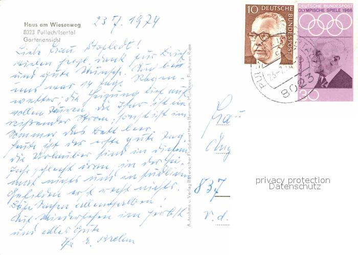 72791616 alte Postkarte Pullach Isartal Haus am Wiesenweg postalisch gelaufen Erhaltung siehe scans [AndreD76] KatCode: 11110009184139