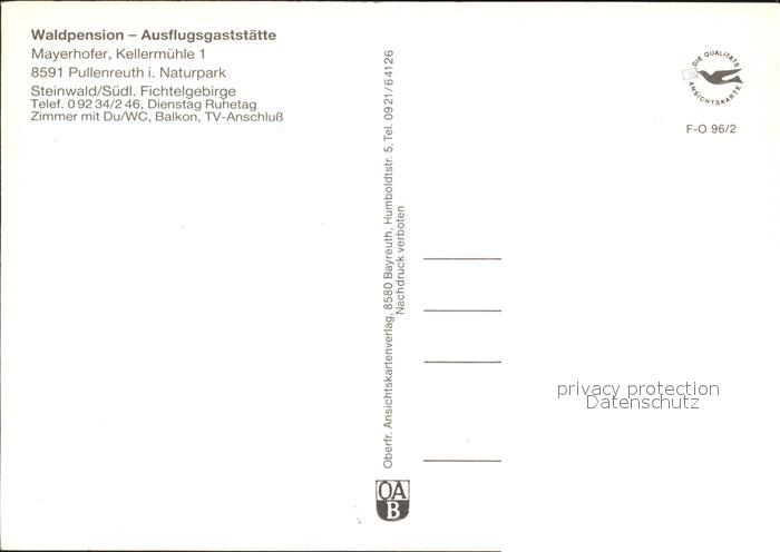 72494414 Pullenreuth Ausflugsgaststaette Waldpension Mayerhofer postalisch nicht gelaufen Erhaltung siehe scans KatCode: 11110009377148