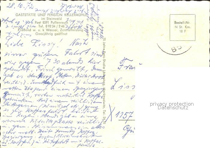 72266269 alte Postkarte Pullenreuth Gaststaette Pension Kellermuehle postalisch gelaufen Erhaltung siehe scans KatCode: 11110009377148