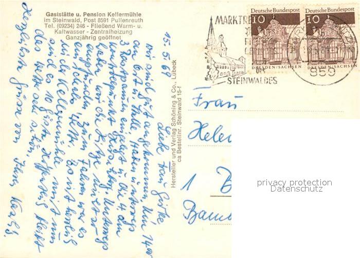 73046070 alte Postkarte Pullenreuth Gaststaette Pension Kellermuehle Steinwald Terrasse Gaststube postalisch gelaufen Erhaltung siehe scans [WerneD78] KatCode: 11110009377148