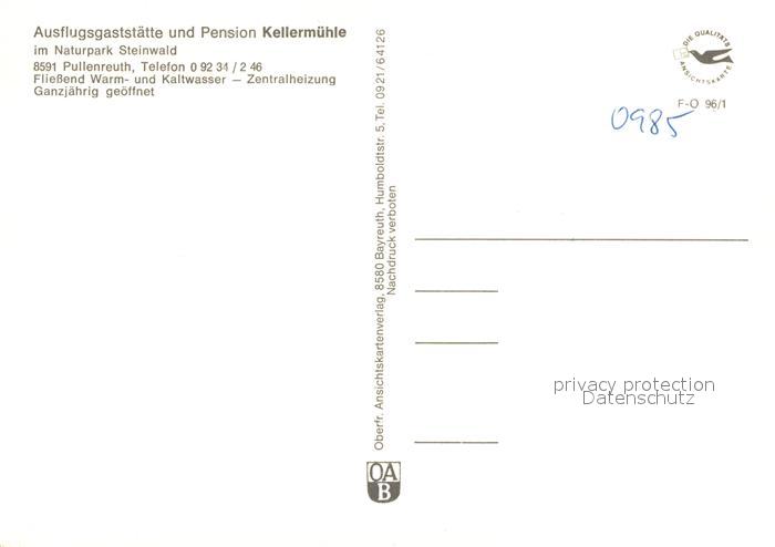 73174502 Pullenreuth Restaurant Pension Kellermuehle postalisch nicht gelaufen Erhaltung siehe scans [LiesaD40] KatCode: 11110009377148