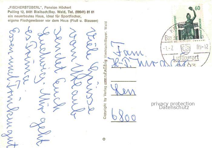 74049770 alte Postkarte Pulling Niederbayern Fischerstueberl Pension Hoecherl Bayerischer Wald postalisch gelaufen Erhaltung siehe scans [FriedD77] KatCode: 11110009372115