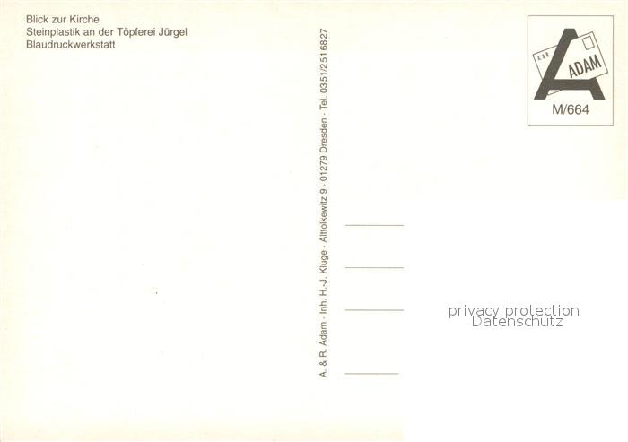 73740985 Pulsnitz Sachsen Kirche Steinplastik an der Toepferei Juergel Blaudruckwerkstatt postalisch nicht gelaufen Erhaltung siehe scans [WerneD78] KatCode: 11110014292430