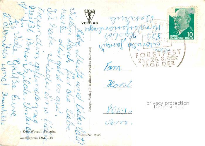 72630432 alte Postkarte Pulsnitz Sachsen Kulturhaus Rathaus postalisch gelaufen Erhaltung siehe scans [LiesaD40] KatCode: 11110014292430