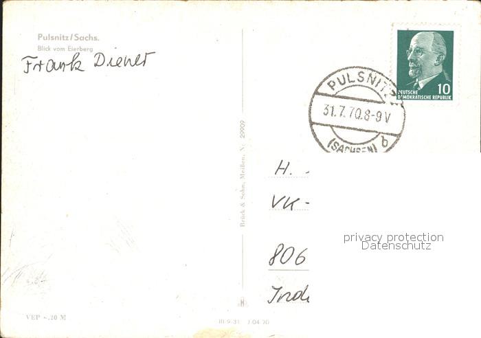 72135928 alte Postkarte Pulsnitz Sachsen Panorama Blick vom Eierberg postalisch gelaufen Erhaltung siehe scans KatCode: 11110014292430
