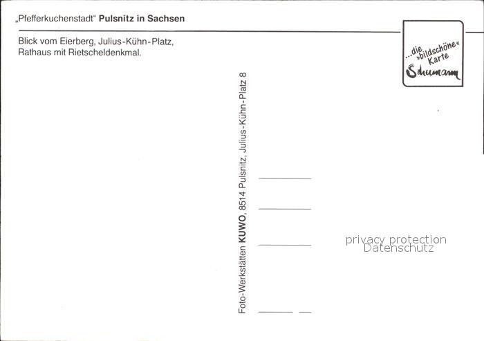 72373541 Pulsnitz Sachsen Pfefferkuchenstadt Eierberg Julius Kuehn Platz Rathaus Rietscheldenkmal postalisch nicht gelaufen Erhaltung siehe scans KatCode: 11110014292430