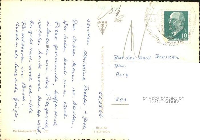 72361302 alte Postkarte Pulsnitz Sachsen Rietschaldenkmal Schlossteich Heilstaette Stadtpark Walkmuehlenbad postalisch gelaufen Erhaltung siehe scans KatCode: 11110014292430