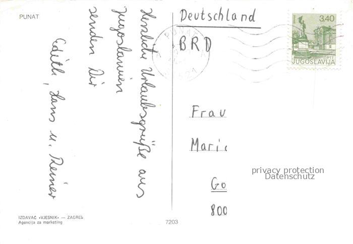74085045 old postcard PUNAT Aleksandrovo Otok Krk Croatia Fliegeraufnahme postalisch gelaufen Erhaltung siehe scans [WerneD78] KatCode: 11260