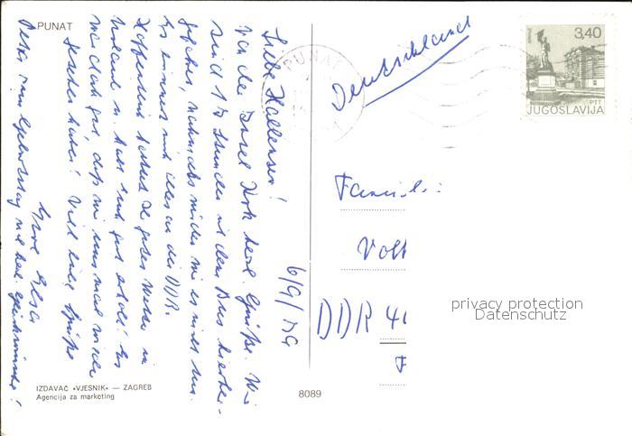old postcard Punat Teilansichten Bungalows Feuerwerk Hafenpartie postalisch gelaufen Erhaltung siehe scans