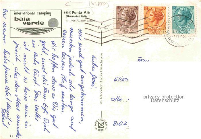 74043297 old postcard Punta Ala Grosseto IT Strandpartie Camping Baia verde Felsen postalisch gelaufen Erhaltung siehe scans [WerneD78] KatCode: 11240