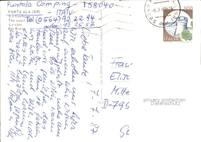 old postcard Punta Ala Kueste postalisch gelaufen Erhaltung siehe scans