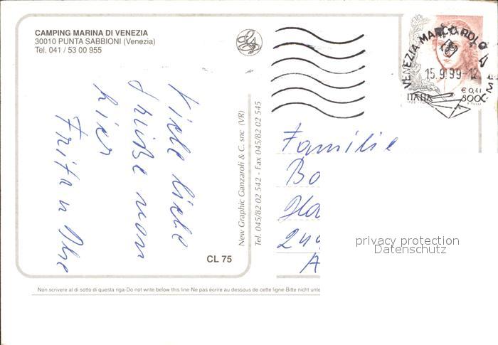 old postcard Punta Sabbioni Camping Marina di Venezia postalisch gelaufen Erhaltung siehe scans