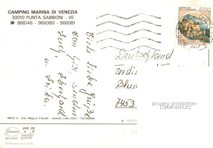 old postcard Punta Sabbioni Camping Marina di Venezia Spiaggia Strand Nationalflaggen postalisch gelaufen Erhaltung siehe scans [FriedD77]