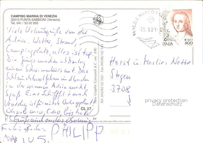 old postcard Punta Sabbioni Camping Marina di Venezia Strand Swimmingpool Seebruecke postalisch gelaufen Erhaltung siehe scans