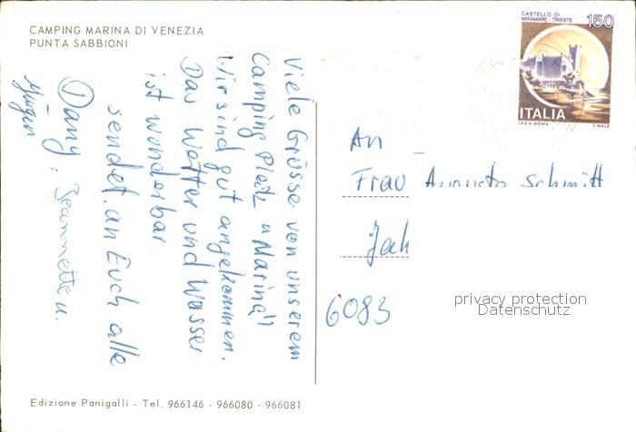 old postcard Punta Sabbioni Camping Marina di Venezia Strand Tennis Gaststaette postalisch gelaufen Erhaltung siehe scans