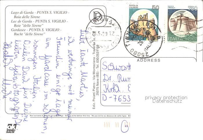 old postcard Punta San Vigilio Lago di Garda Baia delle Sirene postalisch gelaufen Erhaltung siehe scans