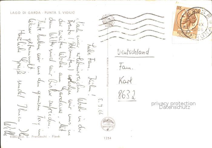 old postcard Punta San Vigilio Villa Gardasee Segelboot postalisch gelaufen Erhaltung siehe scans