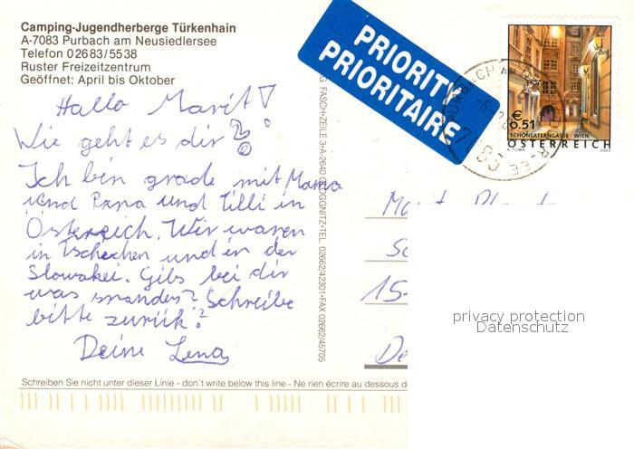 73219537 alte Postkarte Purbach Neusiedler See Camping Jugendherberge Tuerkenhain Freizeitzentrum Windsurfen Tennis postalisch gelaufen Erhaltung siehe scans [FriedD77] KatCode: 11390112010312