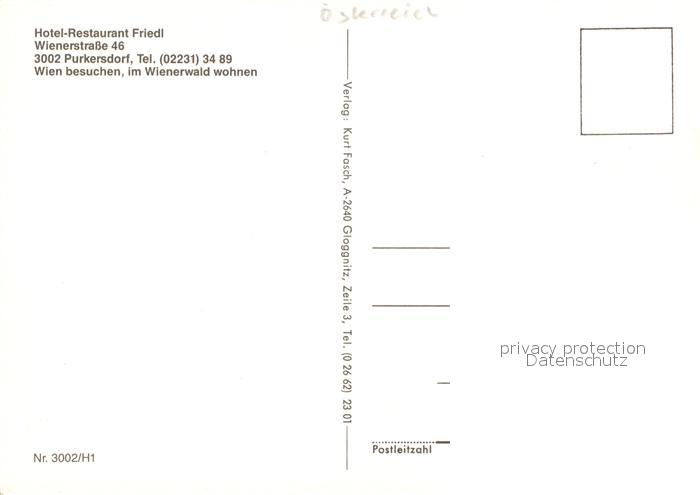13220451 Purkersdorf Hotel Restaurant Friedl postalisch nicht gelaufen Erhaltung siehe scans [LiesaD40] KatCode: 11390126032416