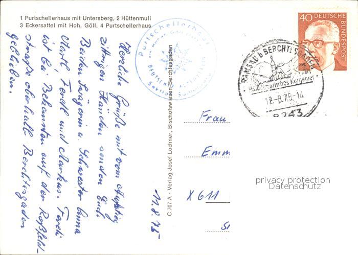 72050994 alte Postkarte Purtschellerhaus Hoher Goell am Hohen Goell Untersberg Huettenmuli Eckersattel mit Hoh postalisch gelaufen Erhaltung siehe scans KatCode: 11110009172116