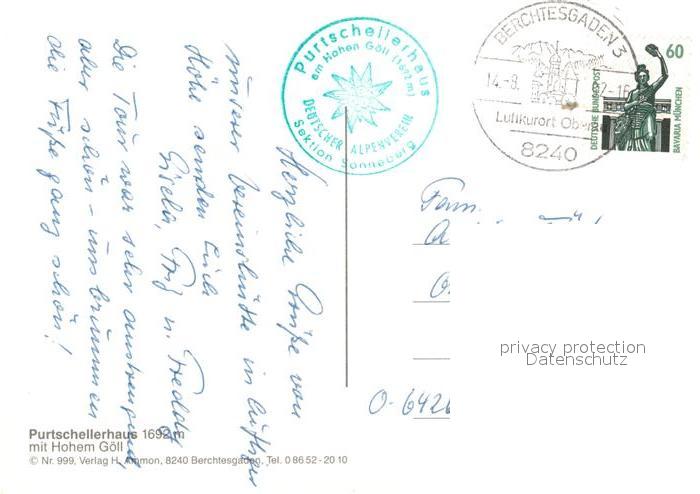 73080682 alte Postkarte Purtschellerhaus Hoher Goell Hohem Goell postalisch gelaufen Erhaltung siehe scans [KathaD81] KatCode: 11110009172116