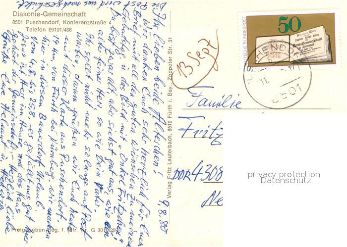 73174499 alte Postkarte Puschendorf Fliegeraufnahme Diakonie Gemeinschaft postalisch gelaufen Erhaltung siehe scans [LiesaD40] KatCode: 11110009573124