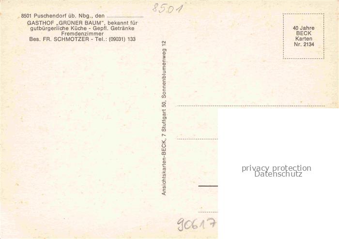 74135376 Puschendorf Fuerth Bayern Gasthof Gruener Baum Kirche Alter Baum Strassenpartie postalisch nicht gelaufen Erhaltung siehe scans [WerneD78] KatCode: 11110009573124