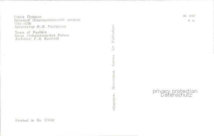 Puschkin Great Yakaterininsky Palace postalisch nicht gelaufen Erhaltung siehe scans