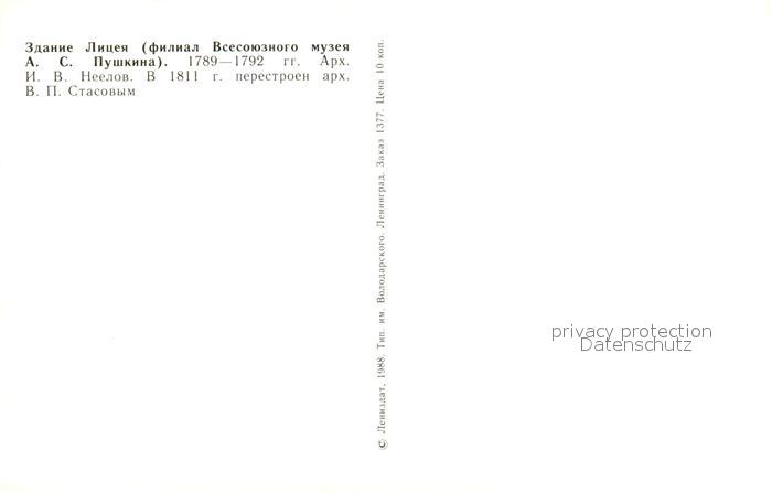 Puschkin Gymnasium Museum postalisch nicht gelaufen Erhaltung siehe scans [NatalD47]