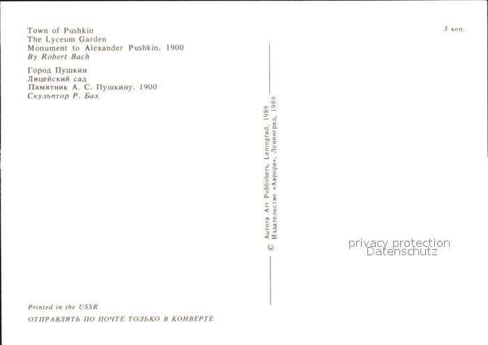 Puschkin Lyceum Garden Monument Alexander Puschkin postalisch nicht gelaufen Erhaltung siehe scans [NatalD47 kt111box]