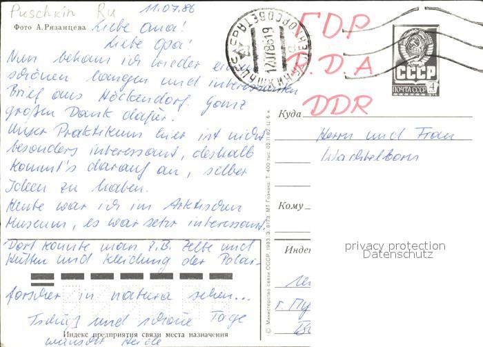 old postcard Pushkin Statue Palast Denkmal postalisch gelaufen Erhaltung siehe scans